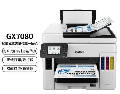 佳能(Canon)加墨式高容量商用傳真一體機(jī)(打印/復(fù)印/掃描 WIFI/云打印 高速 低成本大印量)GX7080 自營(yíng)