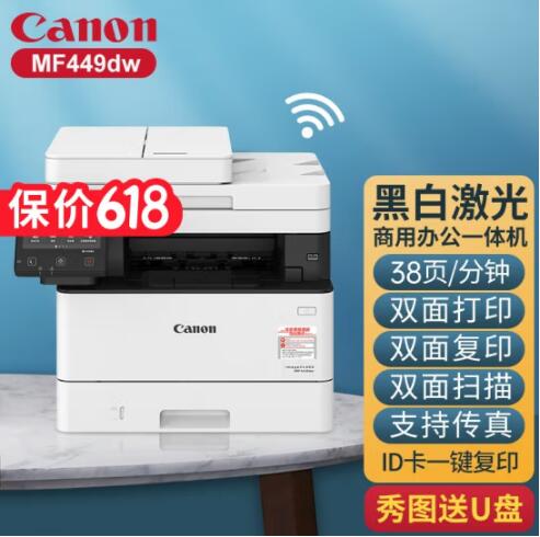 佳能mf449dw/443/441無線黑白激光打印機商用辦公家用復(fù)印掃描自動雙面高速一體機WIFI MF449dw【打印/復(fù)印/掃描/傳真】38頁/分 自營