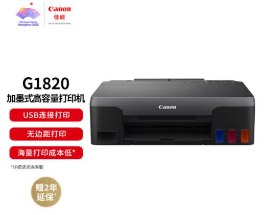 佳能(Canon)G1820大容量可加墨彩色單功能打印機(jī)(作業(yè)打印/照片打印 學(xué)生/家用) 自營(yíng)