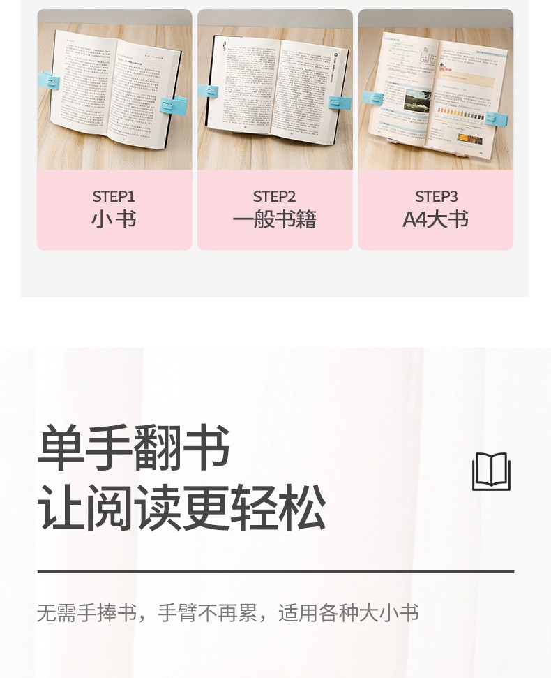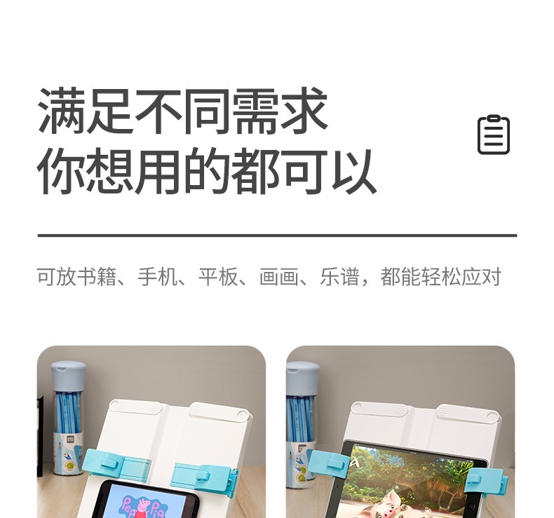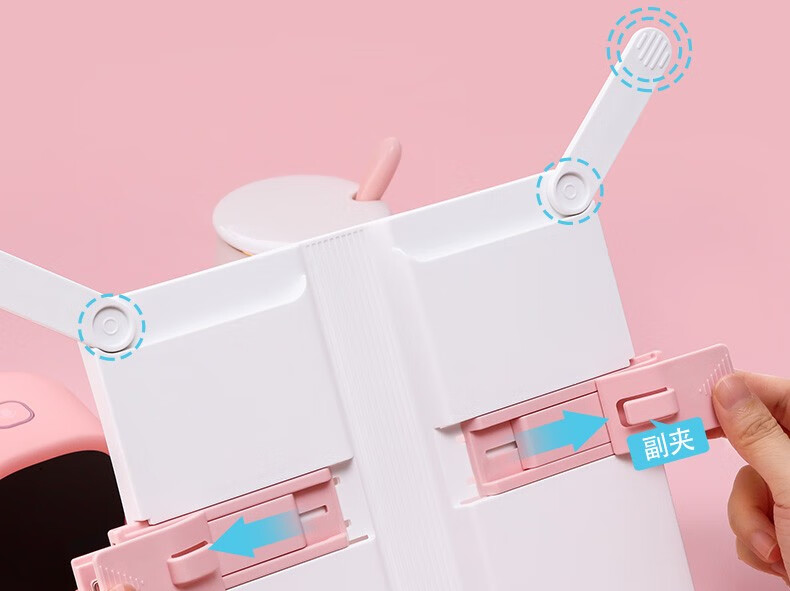 得力閱讀架便攜式可伸縮折疊多功能看書神器兒童坐姿矯正讀書支架學(xué)生用學(xué)習(xí)健康視力桌面書立成人夾書器書靠 【公主粉】可伸縮款+單側(cè)可夾3.0cm 自營