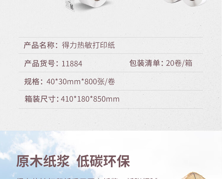 得力(deli)40*30mm三防熱敏標(biāo)簽打印紙 不干膠條碼打印紙(20卷裝 800張/卷)11884 自營(yíng)