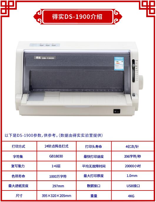 得實(Dascom)DS-1900 高速24針平推 82列票據(jù)打印機(jī) 自營