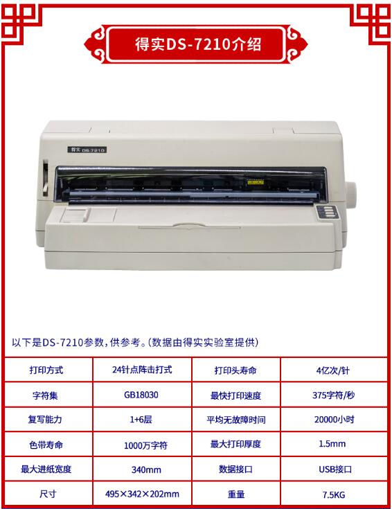 得實(shí)(Dascom)DS-7210 24針平推證薄 票據(jù)打印機(jī) 自營