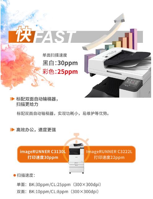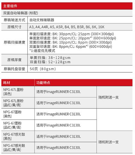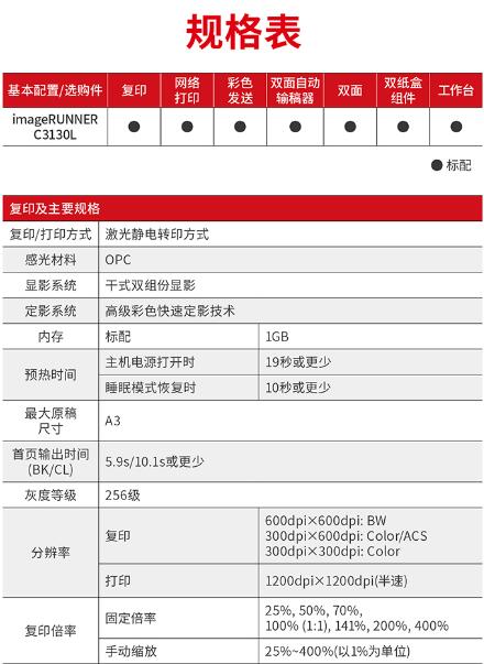 佳能(Canon)大型打印機(jī)iRC3130L 商用辦公a3a4彩色復(fù)合復(fù)印機(jī)(雙面打印/掃描)含雙面自動(dòng)輸稿器工作臺(tái) 自營