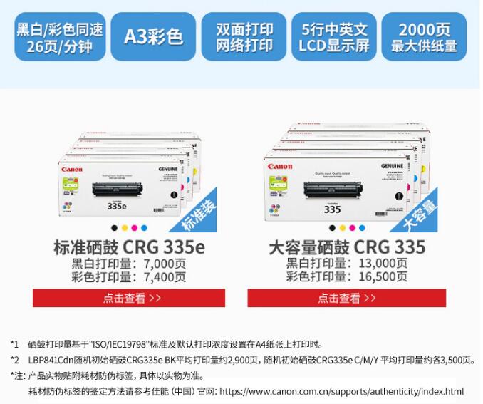 佳能(Canon)LBP841Cdn A3幅面彩色激光單功能打印機(jī)(自動(dòng)雙面打印/有線網(wǎng)絡(luò)打印 商用辦公) 自營(yíng)