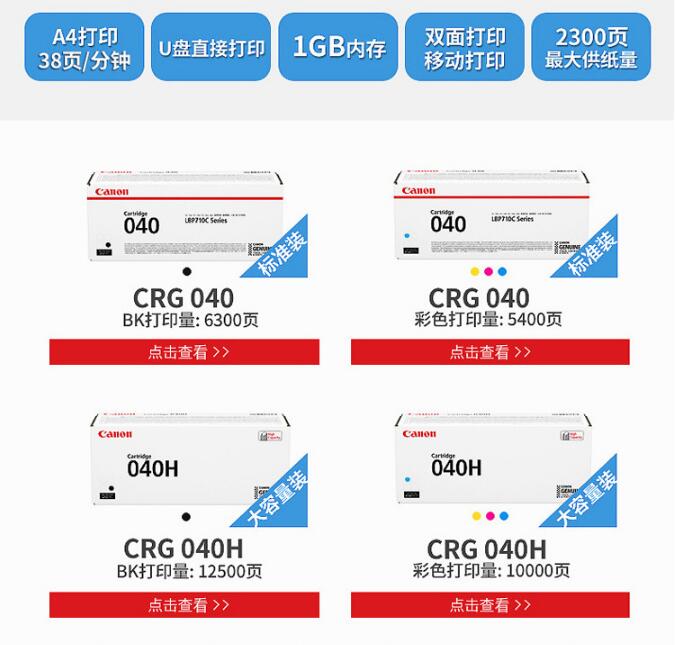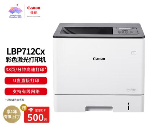 佳能(Canon)LBP712Cx A4幅面彩色激光單功能打印機(jī)(自動雙面打印/有線網(wǎng)絡(luò)打印 商用辦公) 自營