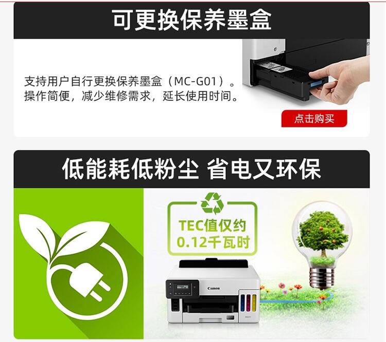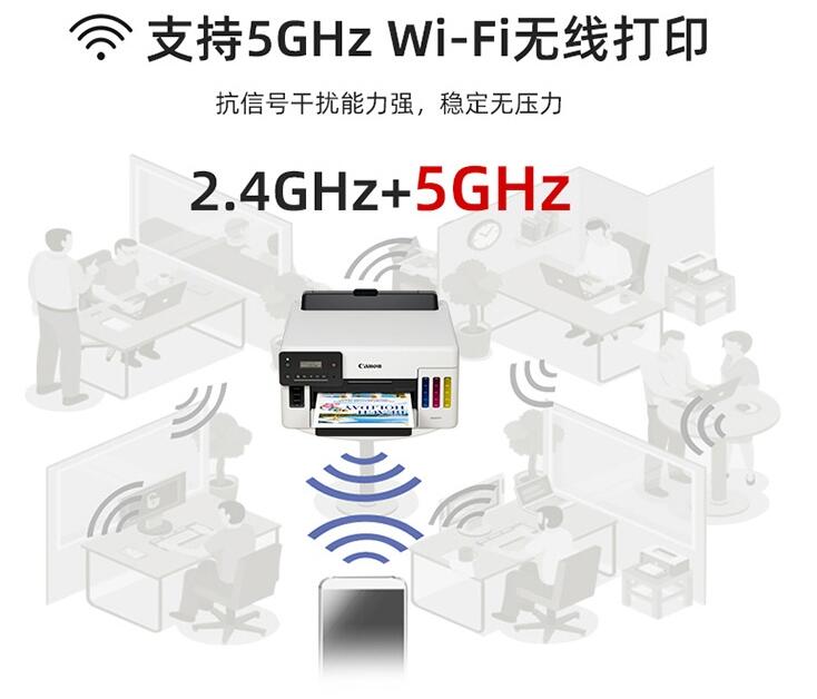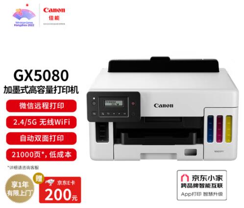 佳能(Canon)GX5080 加墨式高容量商用打印機(打印/雙頻WiFi 5G/自動雙面/大印量) 自營