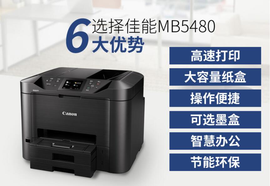 佳能(Canon) MB5480 高速商用無線噴墨打印機一體機 打印復印掃描傳真機一體機 官方標配