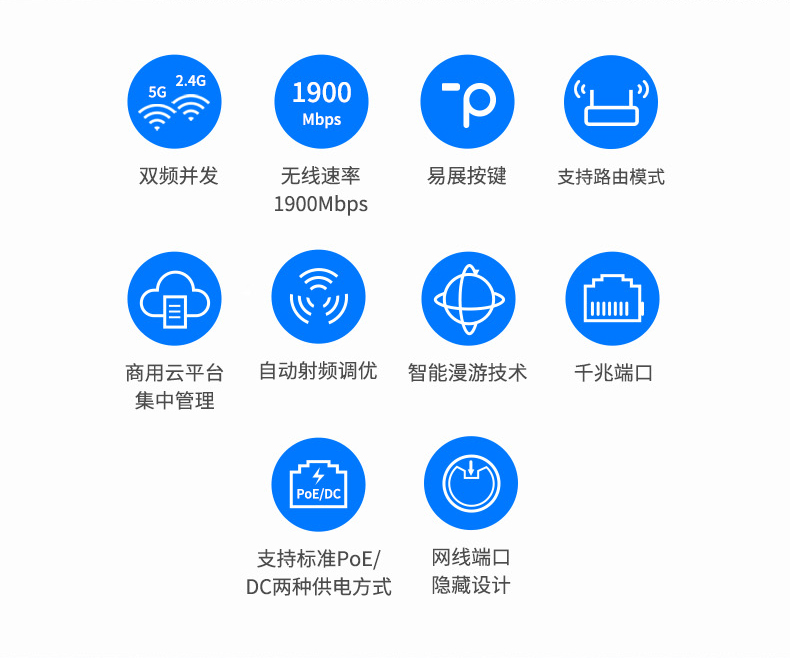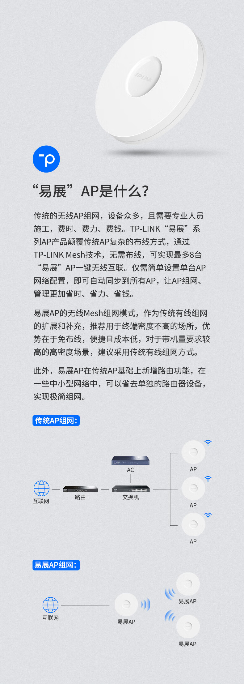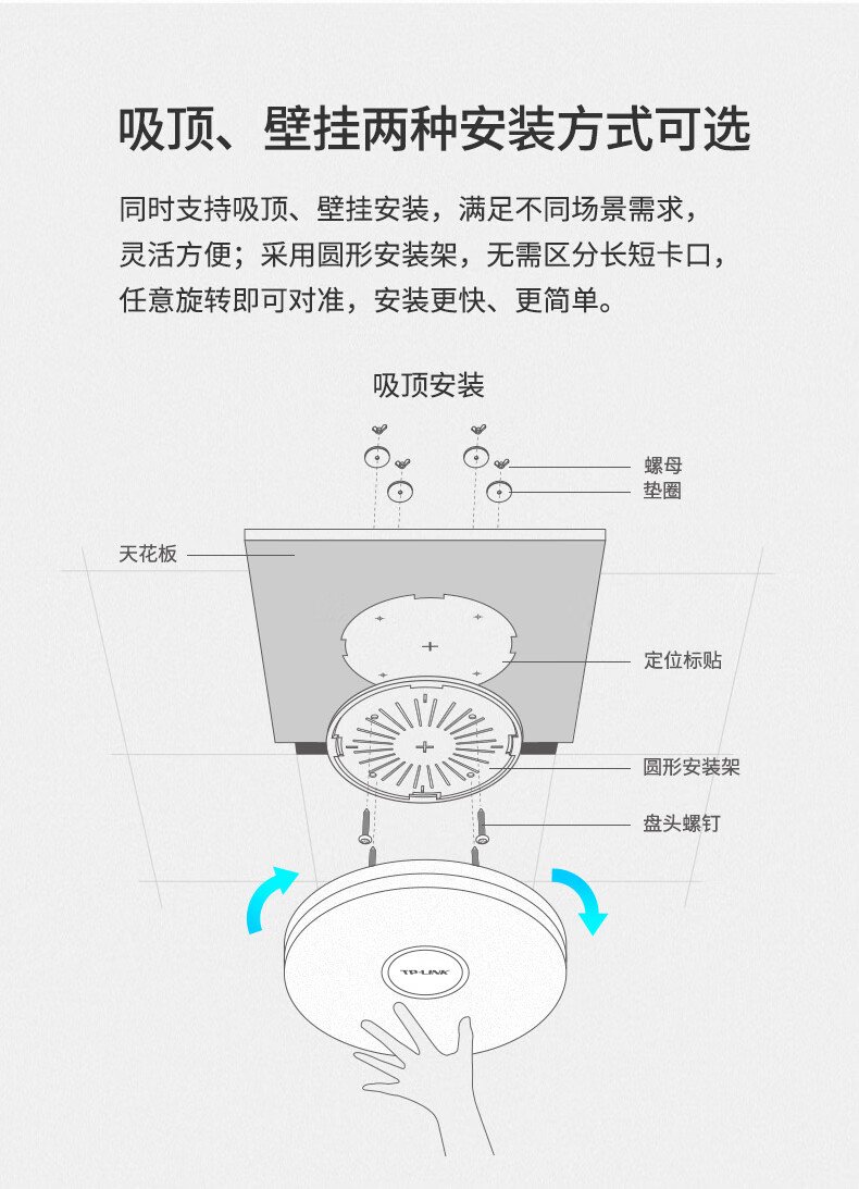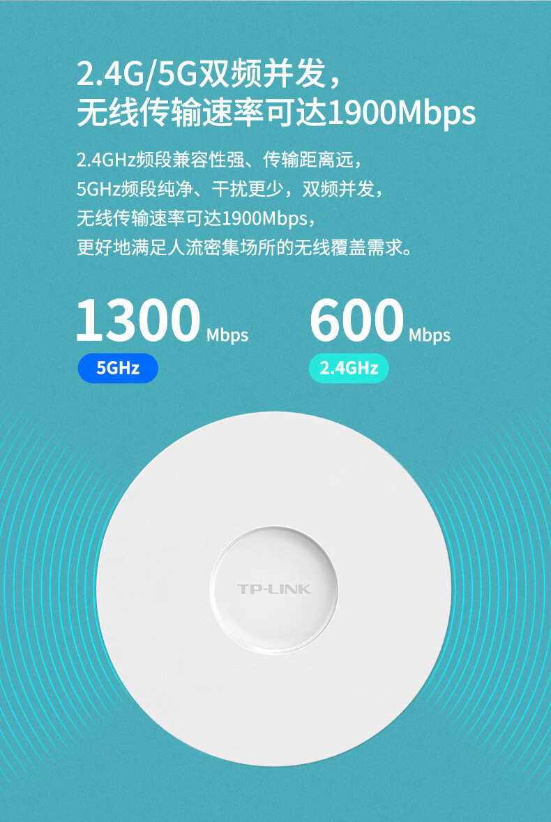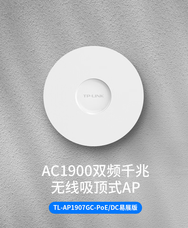 TP-LINK 1900M易展版 雙頻千兆無線吸頂AP 企業(yè)級酒店別墅大戶型wifi接入 TL-AP1907GC-PoE/DC易展版 自營