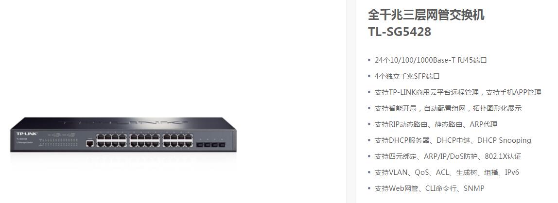 TP-LINK TL-SG5428 24口千兆三層網(wǎng)管交換機(jī) 4個(gè)光纖口 自營