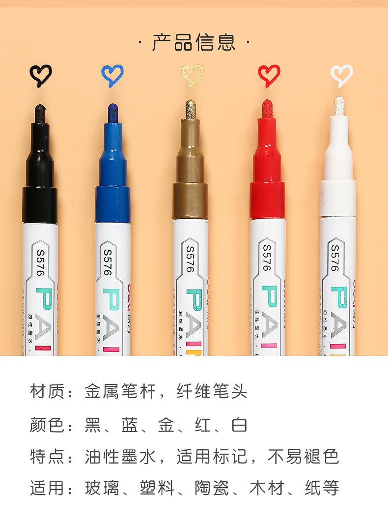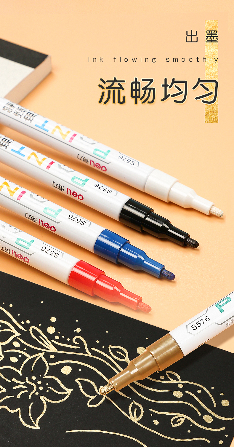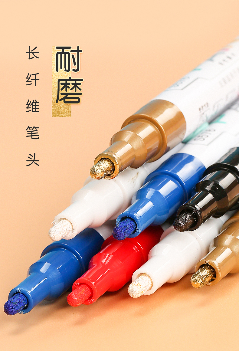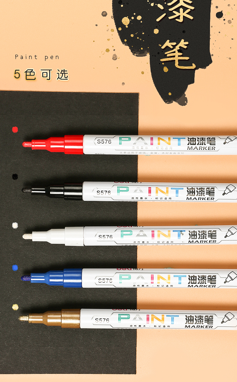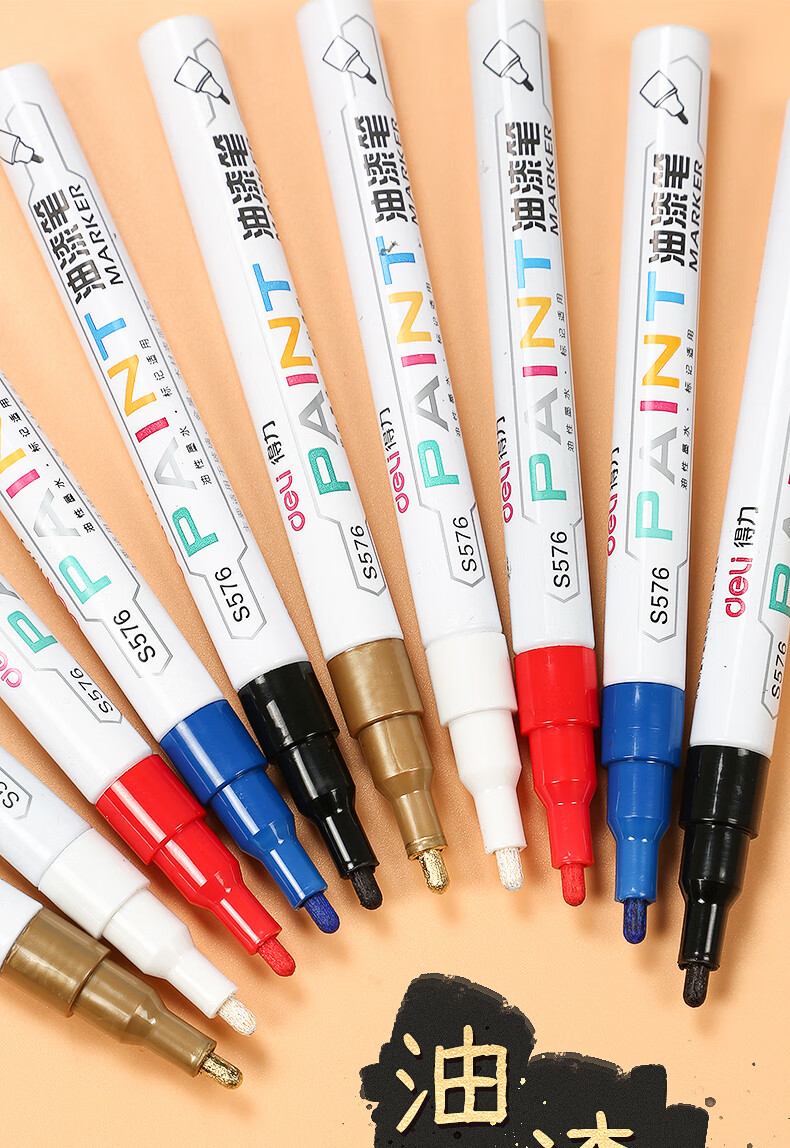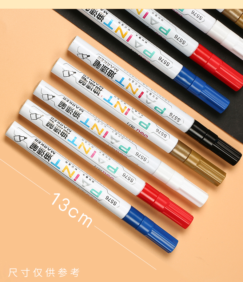 得力油漆筆DIY輪胎筆白色記號筆不易掉色防水畫鞋油性馬克涂鴉筆多色簽字明星簽名筆補(bǔ)色筆 【6支】白色3支+黑金紅各1支 自營