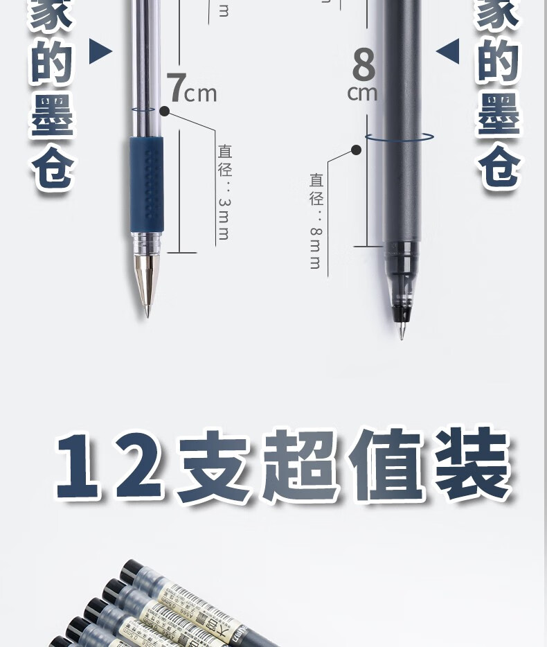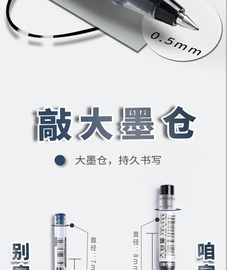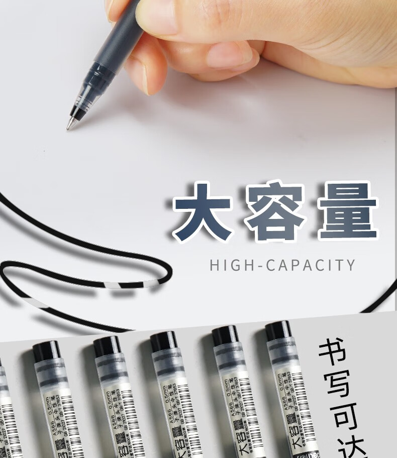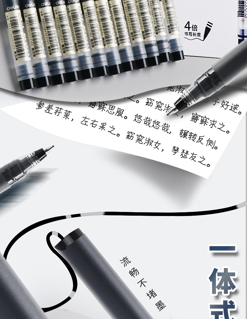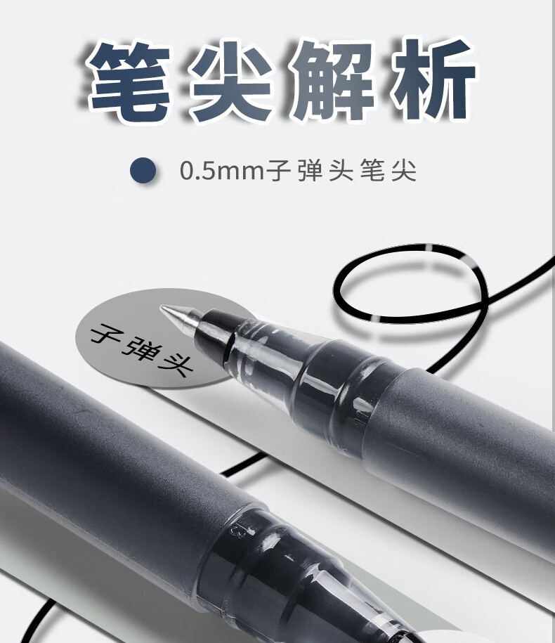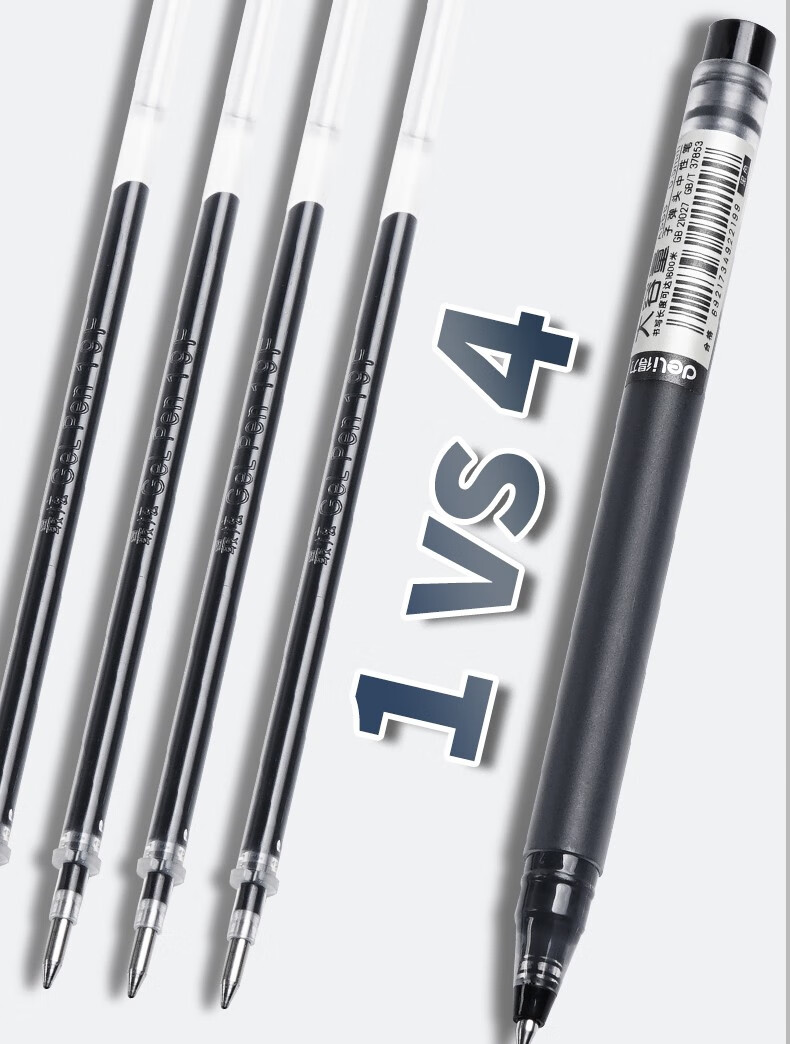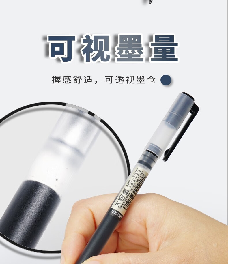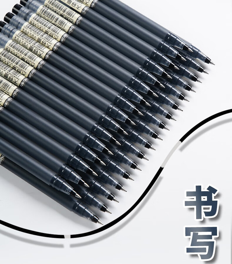 得力無印風(fēng)中性筆水筆簽字筆商務(wù)辦公用品超大容量0.5mm子彈頭黑筆巨能寫學(xué)生文具 巨能寫黑色-12支 自營