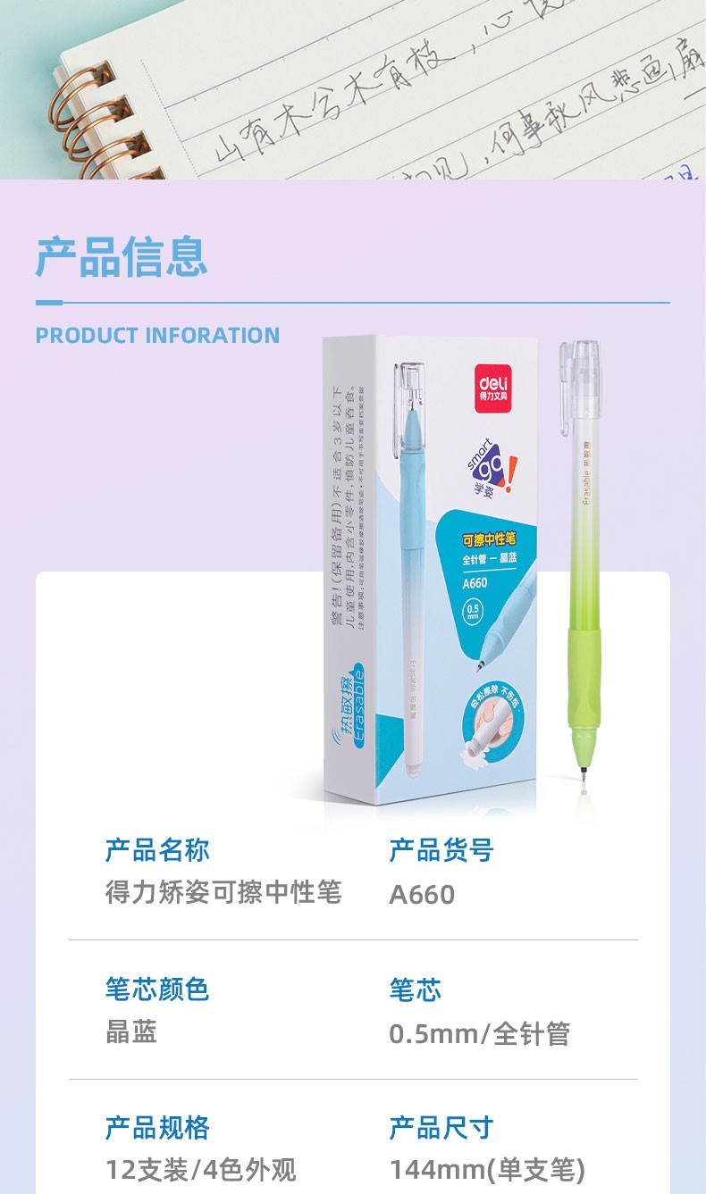 得力(deli)晶藍(lán)可擦筆 摩易擦筆0.5mm小學(xué)生用熱敏可擦中性筆圓珠水性筆魔力擦筆套裝 黑色套裝(20支筆芯+2支可擦筆+1塊可擦橡皮) 自營(yíng)